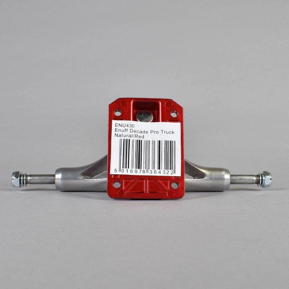Enuff Decade Pro Satin (Natural/Red) Skateboard Trucks Features: Decade Pro Satin Trucks. 5.5” Wide Hanger. 8.0” Axle. Colour – Raw (Natural/Red). Sold as Pair. For Boards 7.75” – 8.125” Approx. Buy Enuff Trucks online at Native Skate Store.