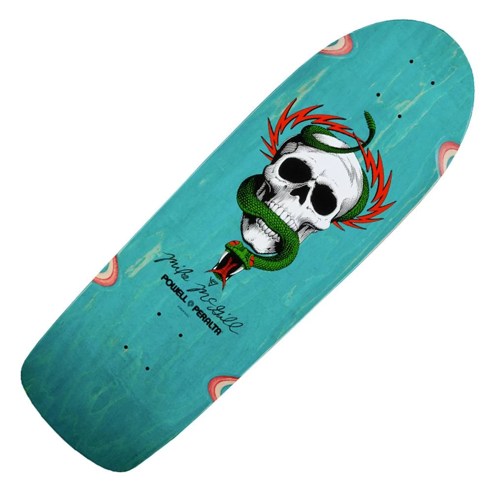Powell Peralta McGill Skull & Snake (Teal Stain) Re-Issue Skateboard Deck Features: McGill Skull & Snake Dek. 10” x 30.125”. 16.625″ WB. 2.5″ Nose. 6″ Tail. Custom Shape. Colour – Teal Stain. Wheels Wells. Buy Powell Decks online at Native Skate Store.