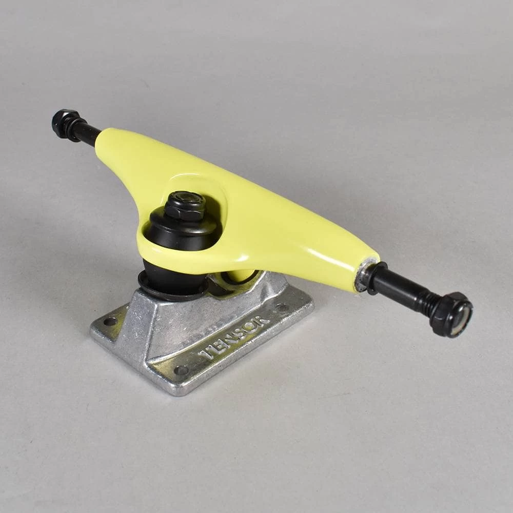Tensor Alloys Skateboard Trucks Features: Alloys Trucks. 8.0” Axle. 5.25” Raw Hanger. Colour – Safety Yellow/Raw. For Boards 7.75” – 8.125” Approx. Sold as Pair. Buy Tensor Trucks online at Native Skate Store.