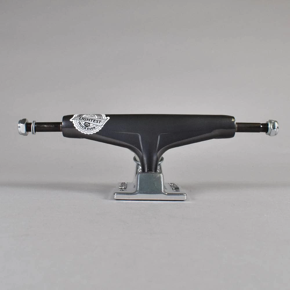 Tensor Mag Light Glossy Skateboard Trucks Features: Mag Light Glossy Trucks . 8.0” Axle. 5.25” Wide Hanger. Hollow Kingpin & Axle. Sold As Pair. For Boards 7.75” – 8.125” Approx. Colour – Gun Metal/Silver. Buy Tensor Trucks online at Native Skate Store.