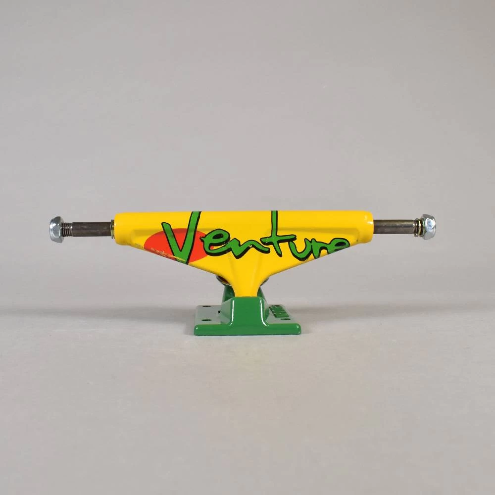 Venture 92′ Full Bleed Team Hi 5.2 Skateboard Trucks Features: Full Bleed Truck. 8.0” Axle. 5.2” Hanger. For Boards 7.75”-8.1” (Approx). Sold As Pair. Colour – Yellow/Green/Red. Buy Venture Trucks online at Native Skate Store.